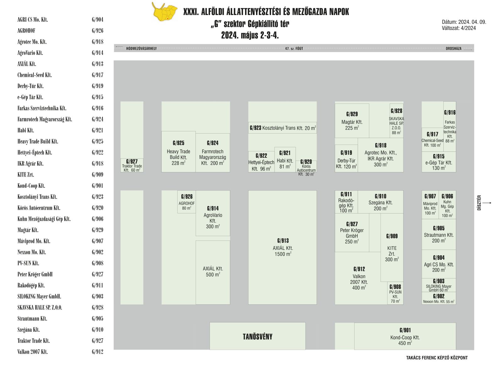 A Hód-Mezőgazda Zrt. iránybusz járatot indít a kiállítás területére és vissza 2024.május 4 -én szombaton reggel 8 és 18.30 óra között az alábbi felszálló helyekkel: